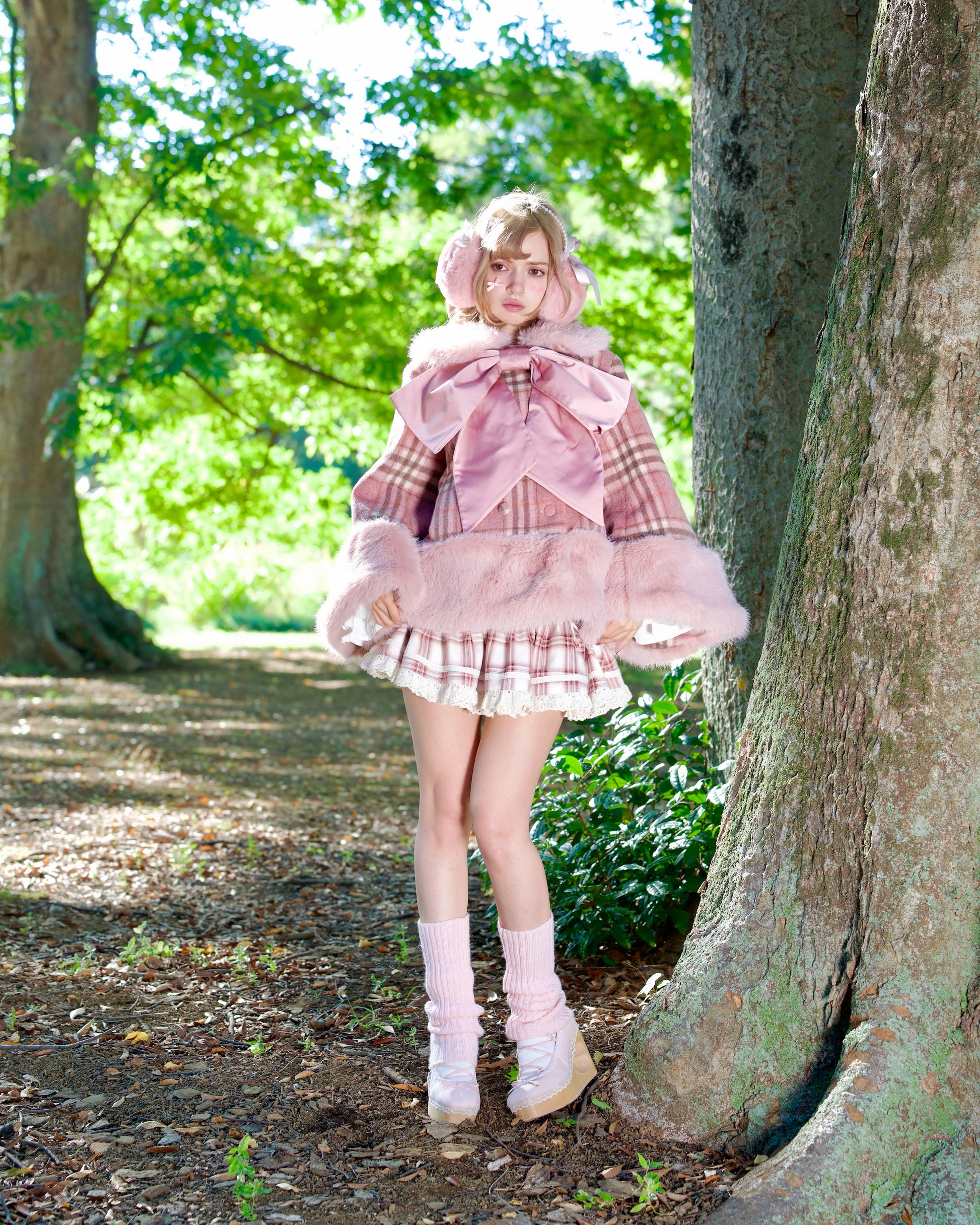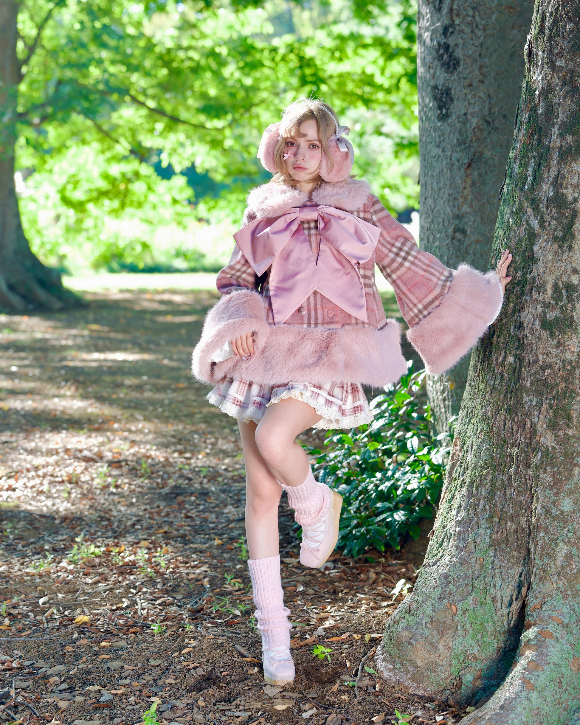 Winter Girl Double Breasted Ribbon Jacket - Pink Check // PREORDER