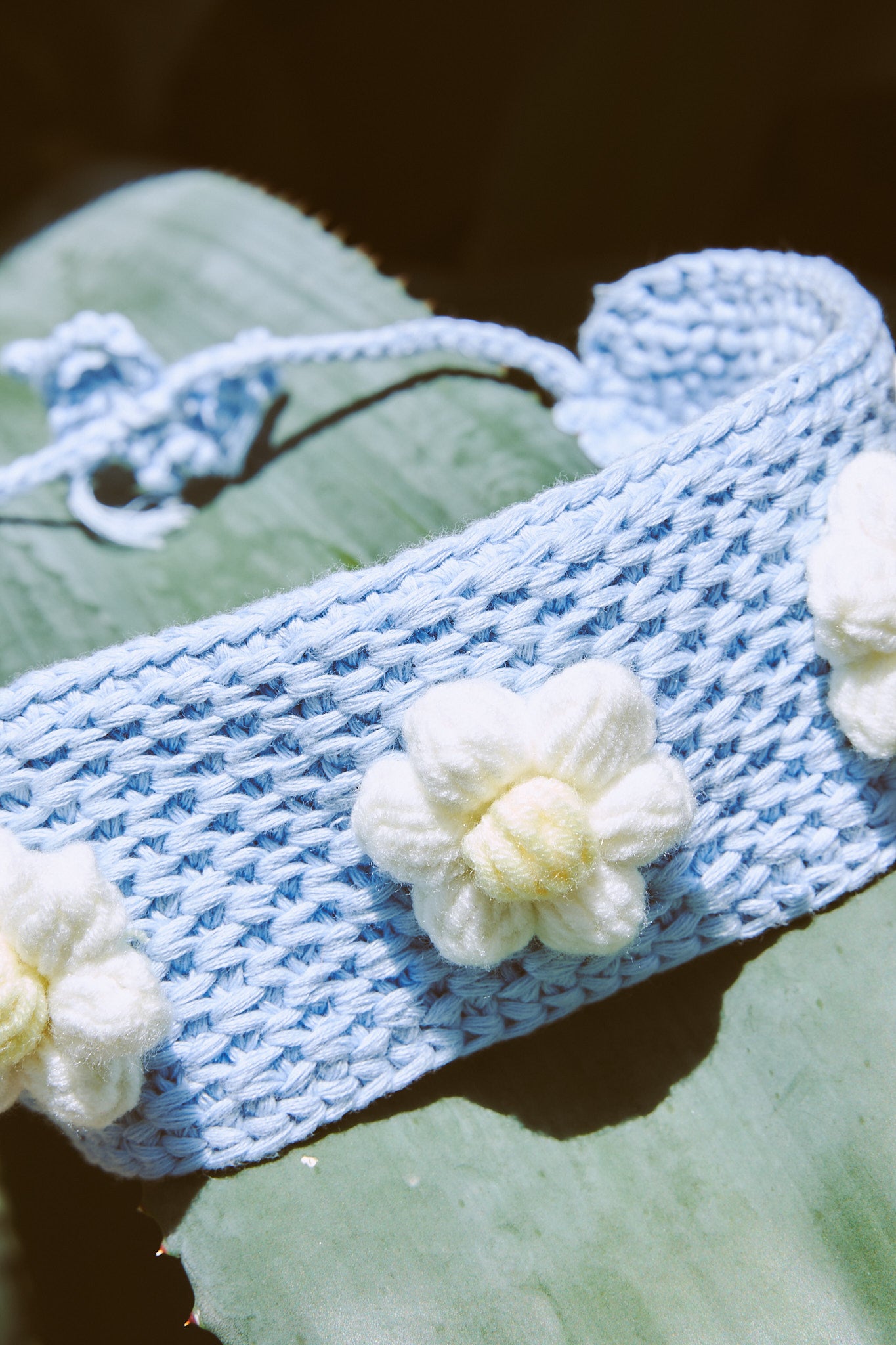 Our Daisy Dreams Crochet Headband is the perfect accessory to elevate your everyday style with a hint of floral flair. With its adorable blue crochet daisies, this headband adds a touch of whimsy and charm to any outfit. Simply tie it at the back for a relaxed and effortless look.