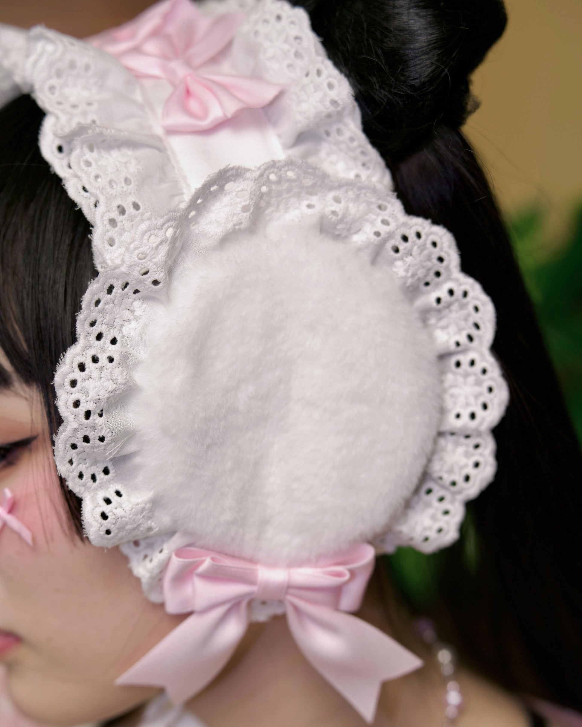 Winterbelle's Bow Ear Warmer - White x Pink // PREORDER
