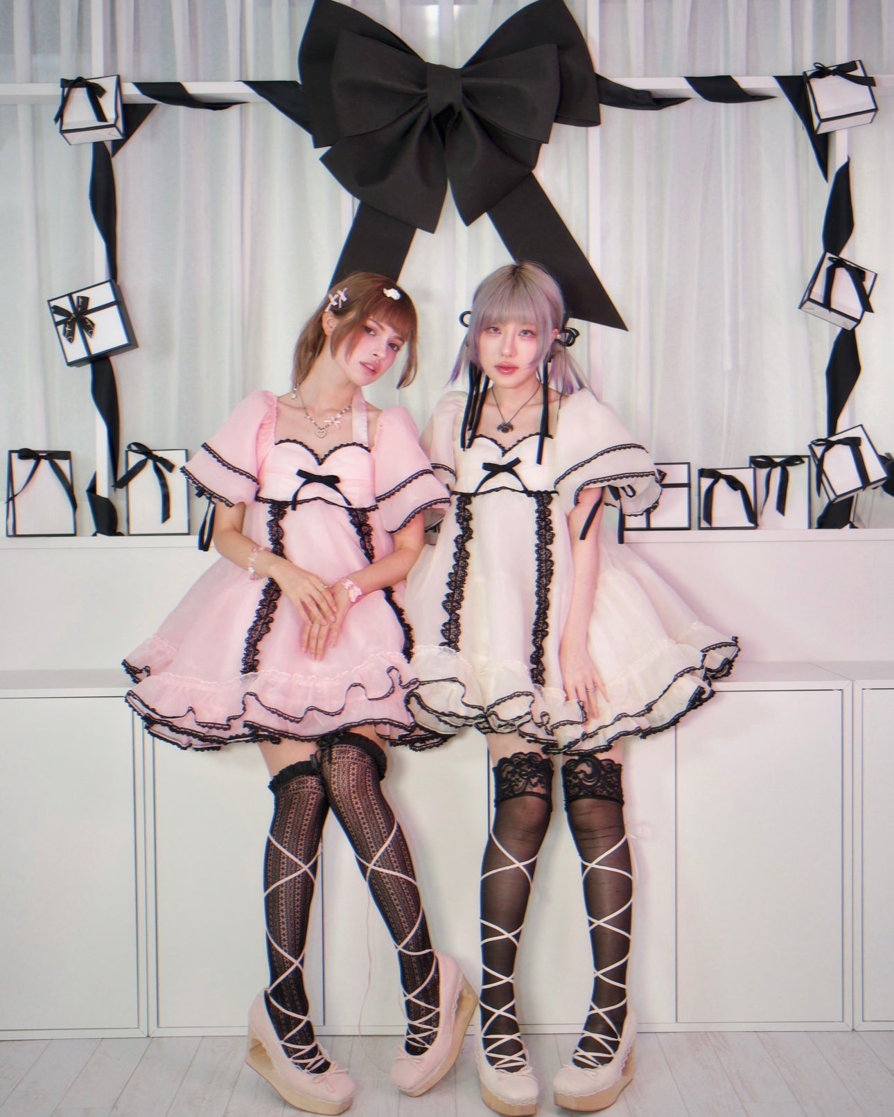 Like sugar and spice, the sweetness of the fluffy organza is given an edge with the black ruffles of lace. Perfect for your magical girl moment. 🎀