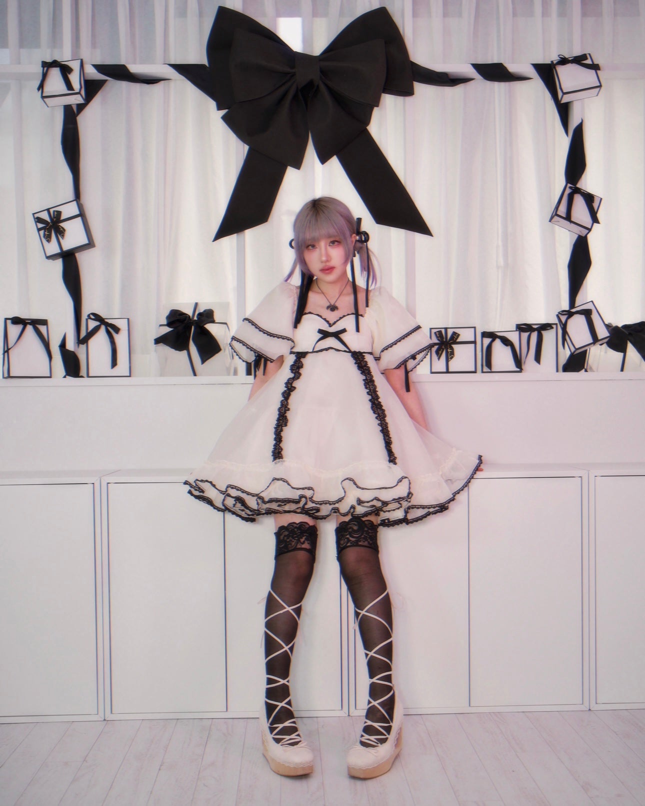 Like sugar and spice, the sweetness of the fluffy organza is given an edge with the black ruffles of lace. Perfect for your magical girl moment. 🎀
