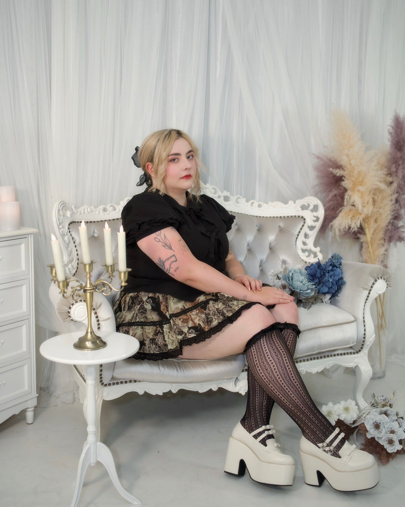 Our Prep School Idol Kitty Print Skirt is a playful and stylish addition to your wardrobe. This short skirt, crafted from thick cat printed fabric, is adorned with heart-shaped lace for a touch of sweetness. Perfect for a youthful and energetic look, it comes with built-in bloomers for added comfort and confidence.
