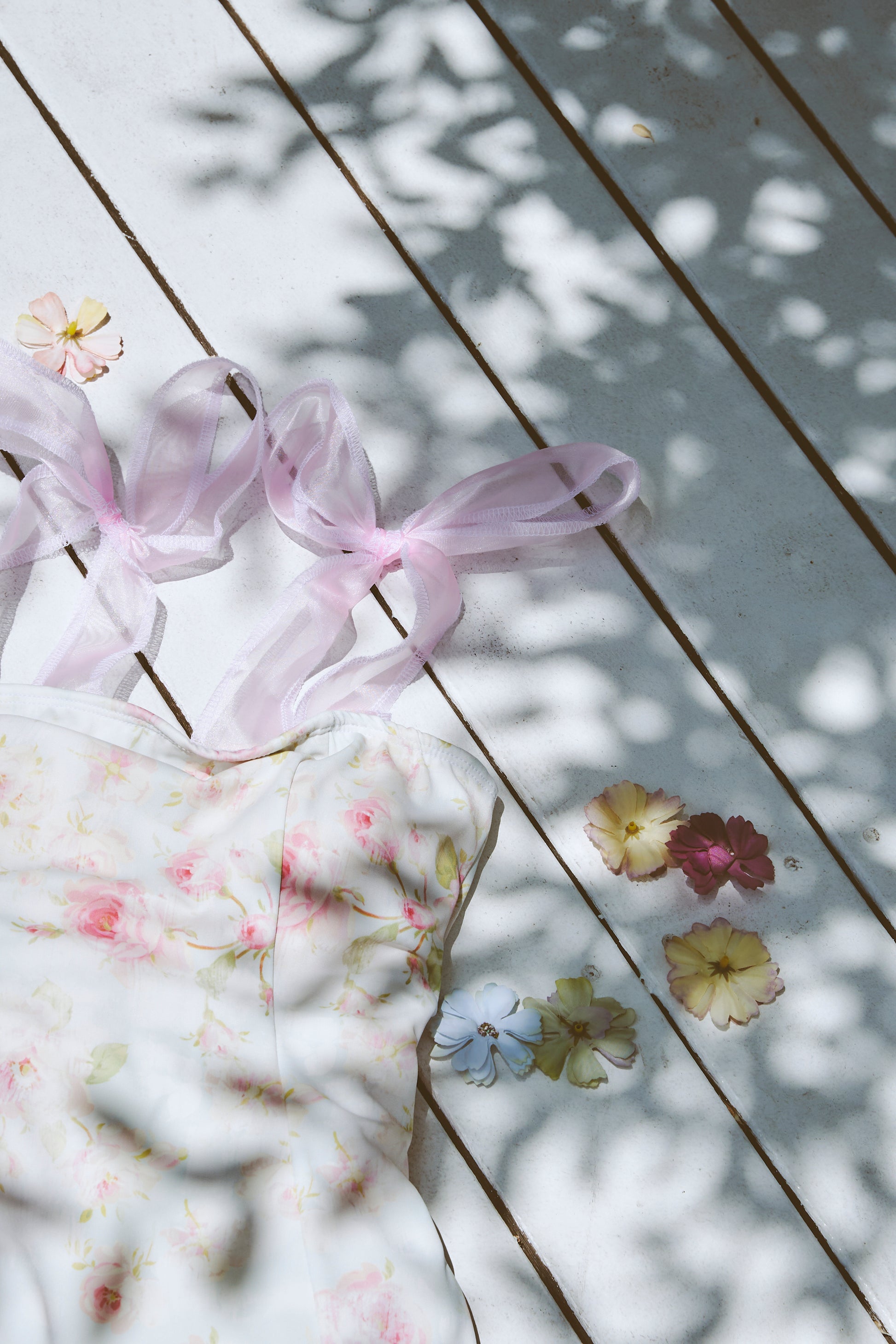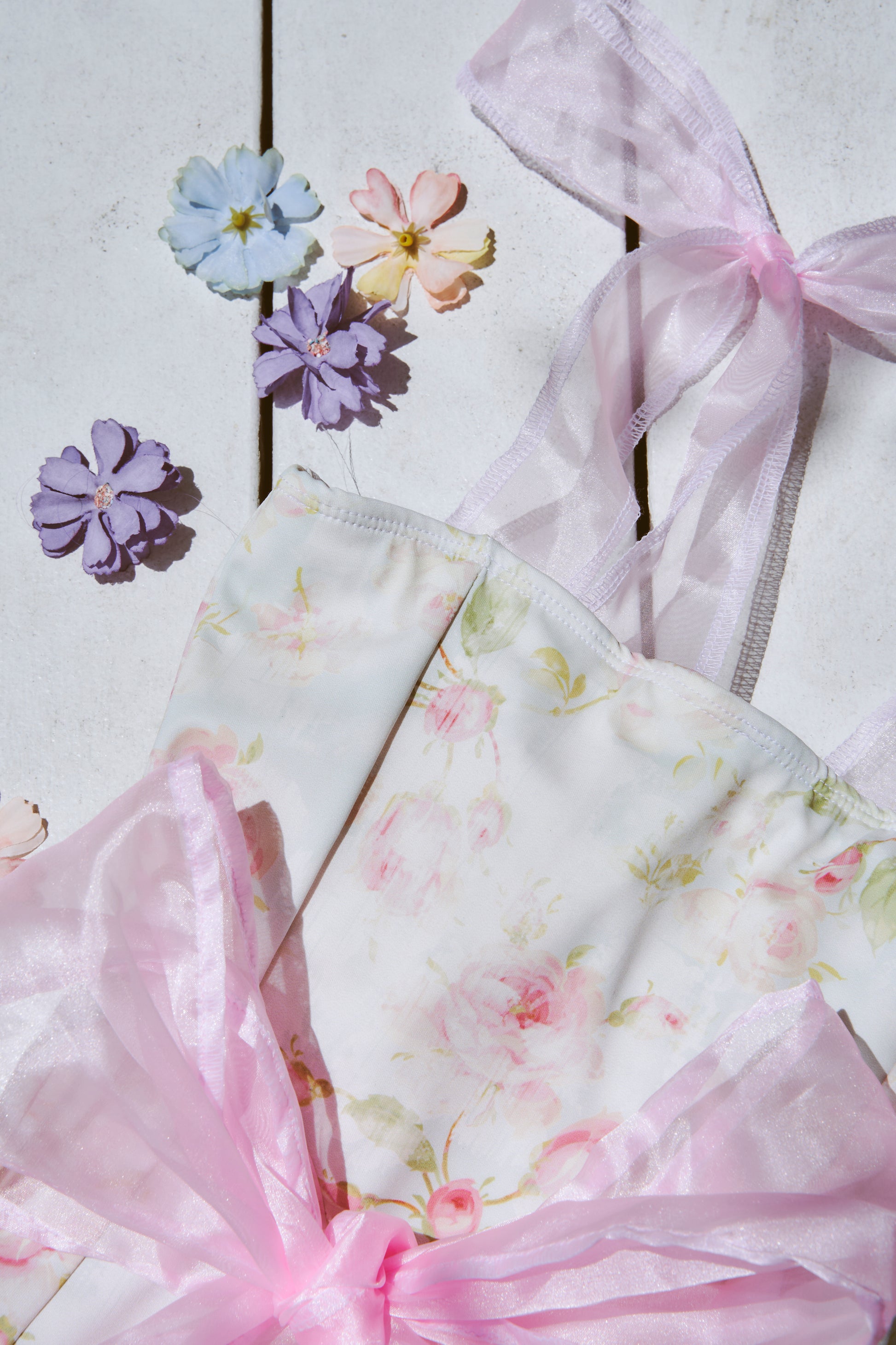 Experience the allure of a blossoming garden with our "Seaside Mermaid Serenade" Floral One-Piece Swimsuit. This stunning swimsuit features a mini dress-like design adorned with a vibrant floral pattern. Delicate pink organza straps on the shoulders and big pink organza straps on the sides, tied into a charming ribbon at the back, add a touch of feminine elegance. Features removable padding. Dive into style and embrace the beauty of summer with this captivating swimsuit.