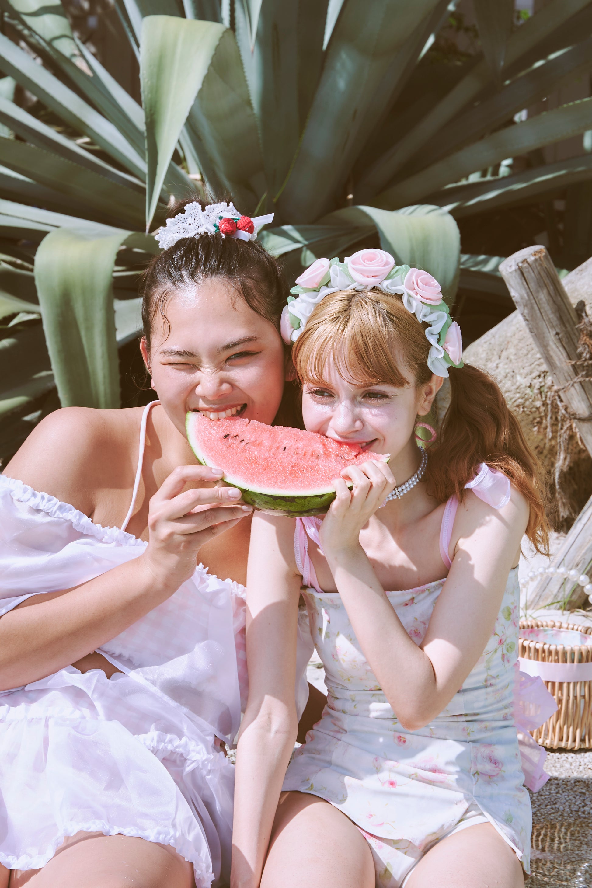 This is a collection that has been remade with a new factory. Although it remains mostly unchanged, some small improvements have been made (notably with this one, due to a new printing factory there may be some small colour differences, and the organza sleeves and waist ties have a bit more volume!), as well as the sizes being expanded on.