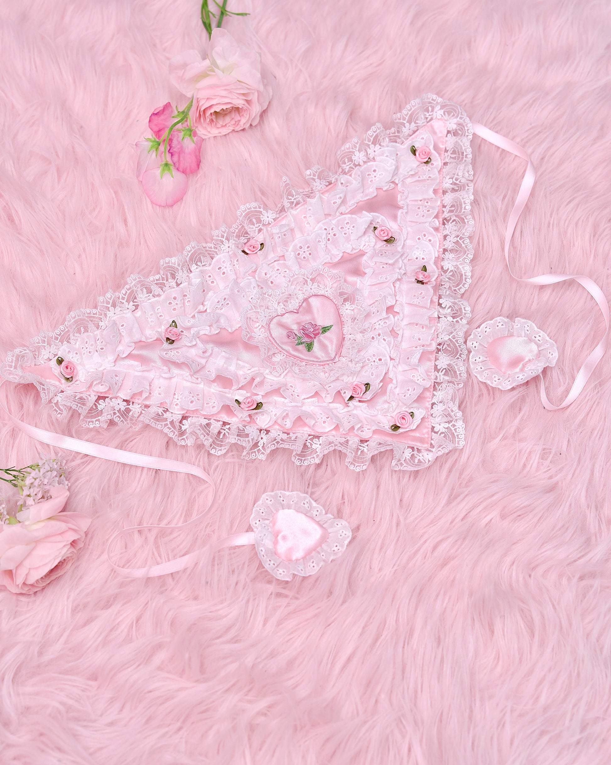 Finished with ribbon ties for an adjustable fit, this piece brings a charming and feminine touch to any outfit.