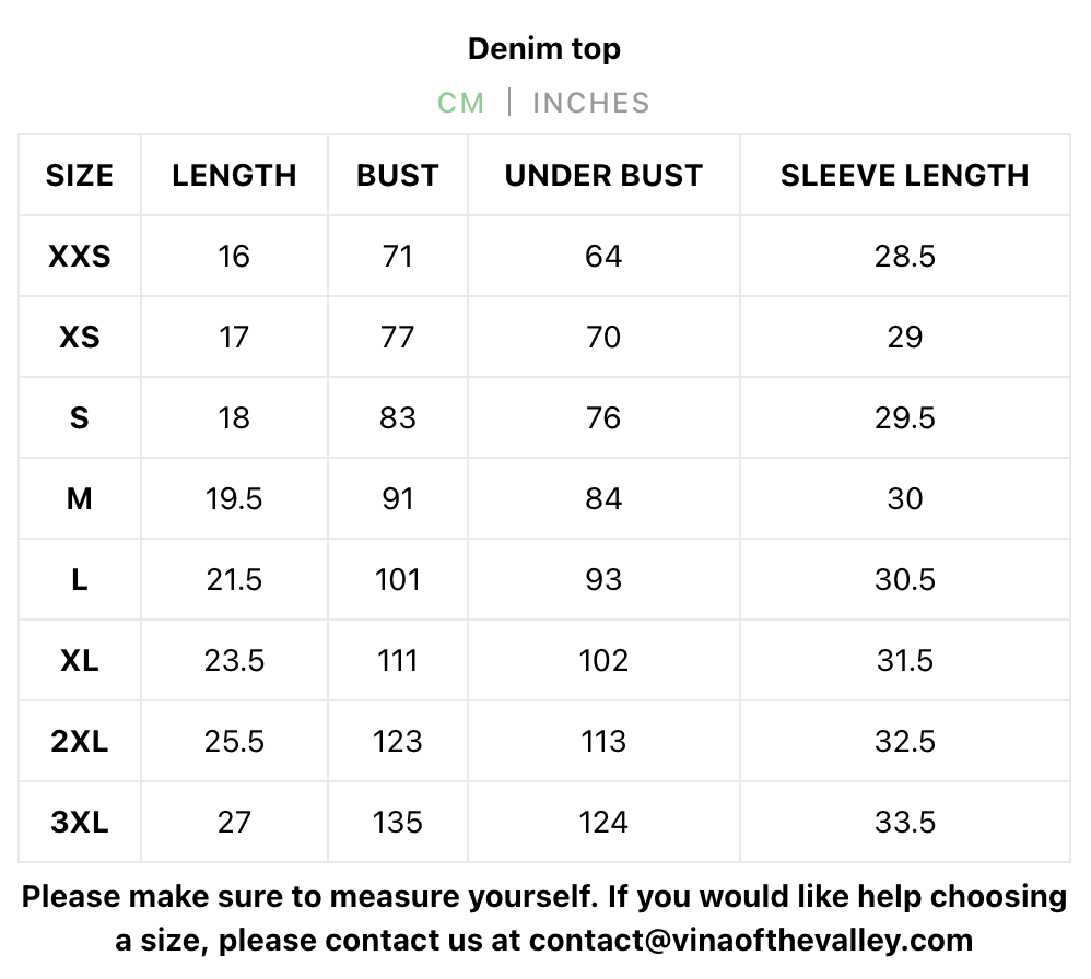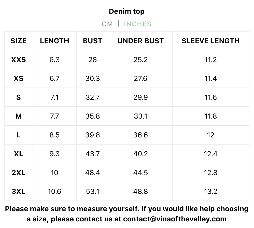 Please double check your size. The size may not be what you would expect, so please compare your measurements to the size chart. If you have any questions, please reach out to contact@vinaofthevalley.com. We would be more than happy to assist you.