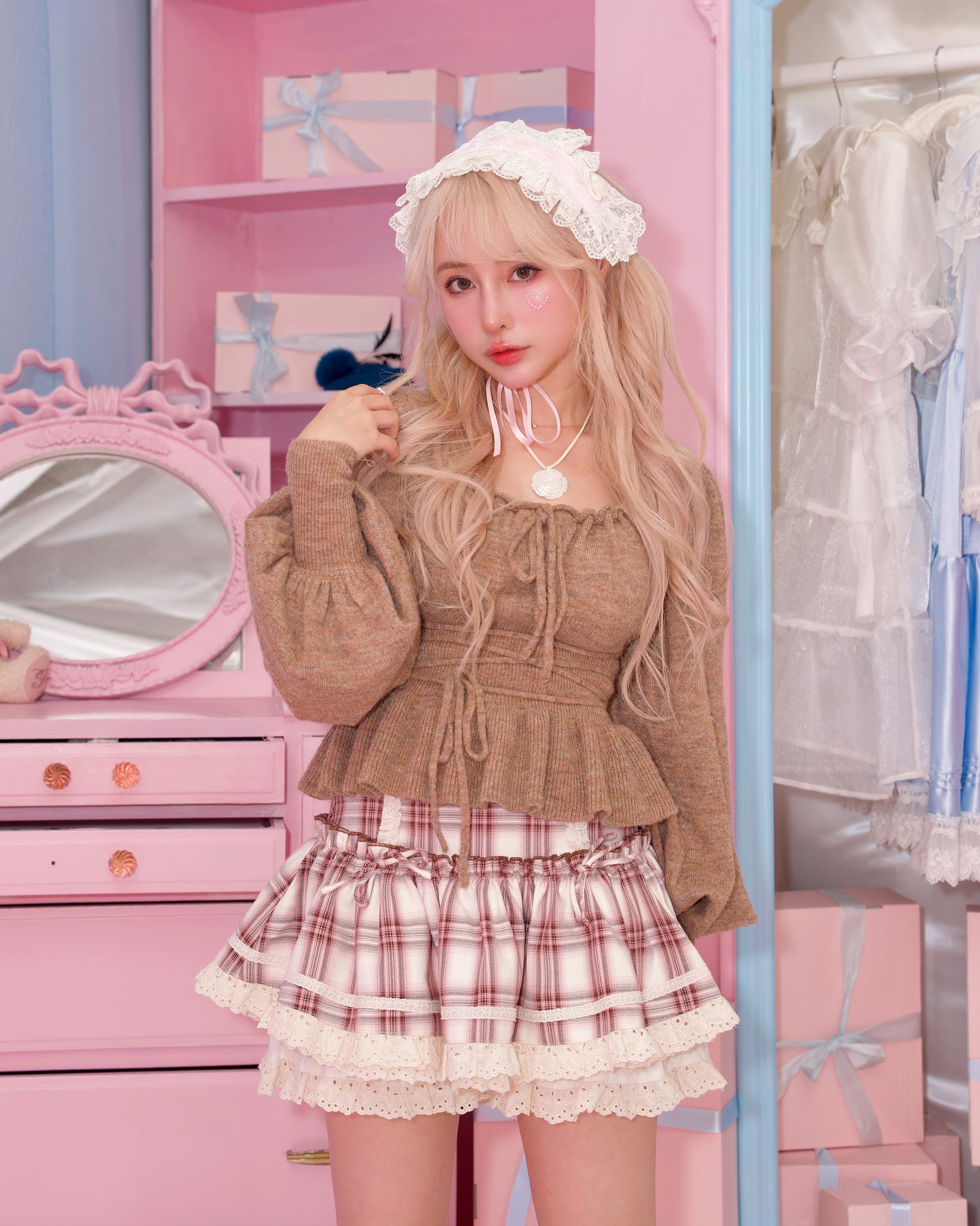 Winter Girl Double Breasted Ribbon Jacket - Pink Check // PREORDER