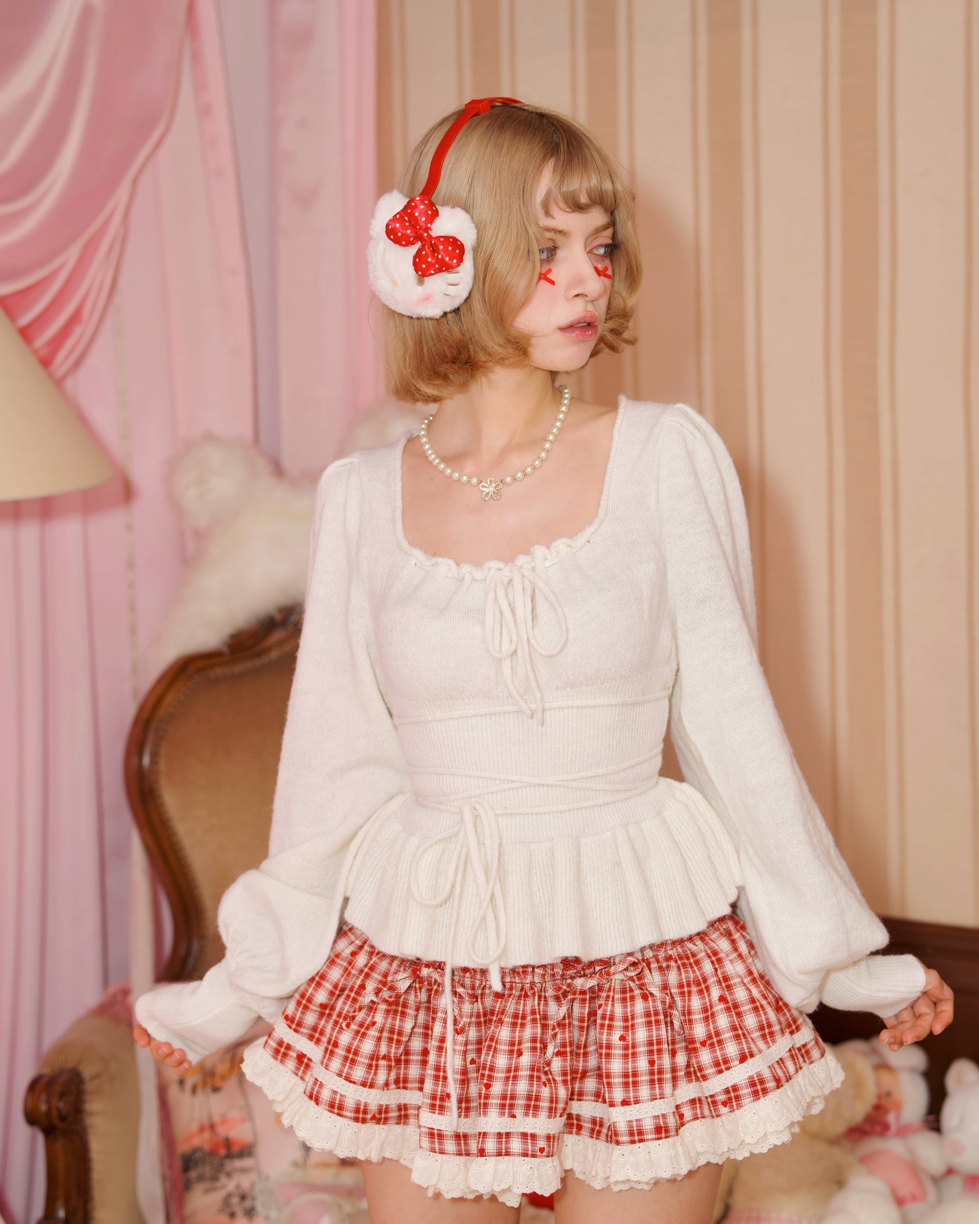Straight from a dream, this sweater flatters with a ruched bust, graceful balloon sleeves, and a waist tie made from the same plush knit for a perfectly seamless wrap. The ruffled peplum hem lends a touch of romance, making it just as at home with flowing skirts as with tailored trousers.