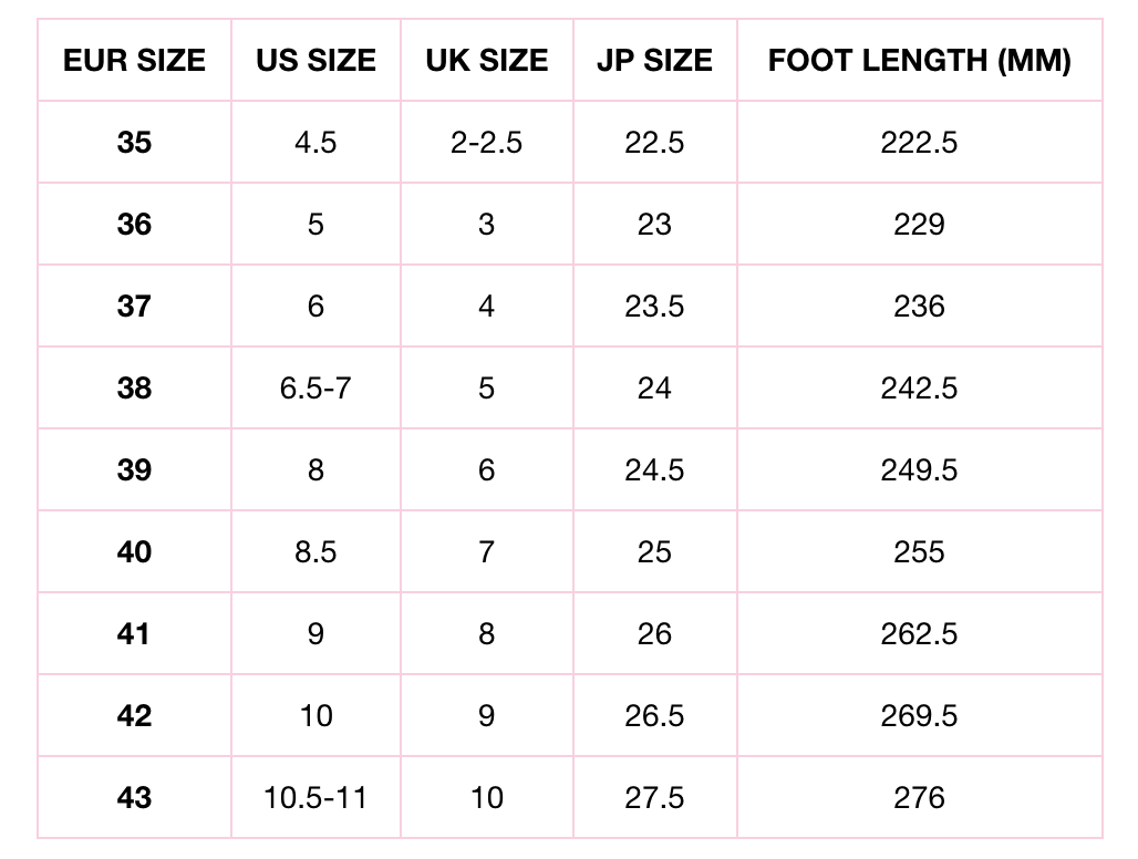 The size chart is different from the original cat heel so please be sure to double check your size before ordering.