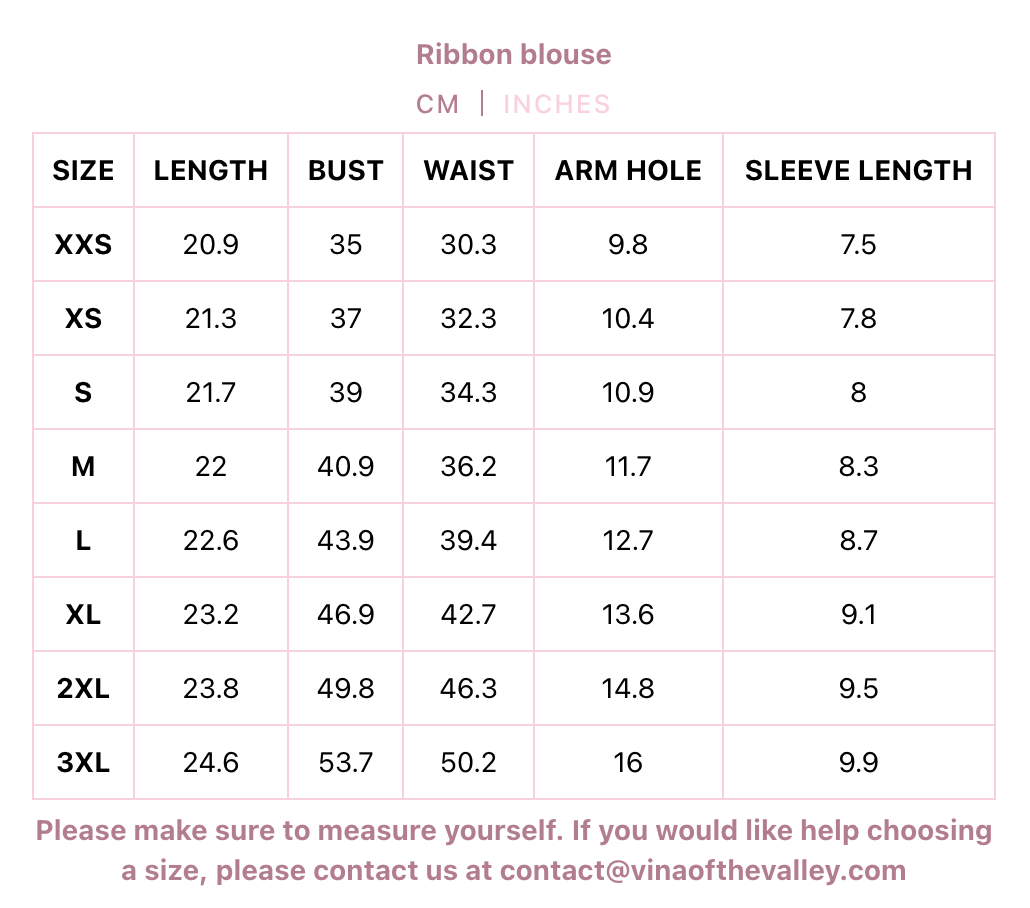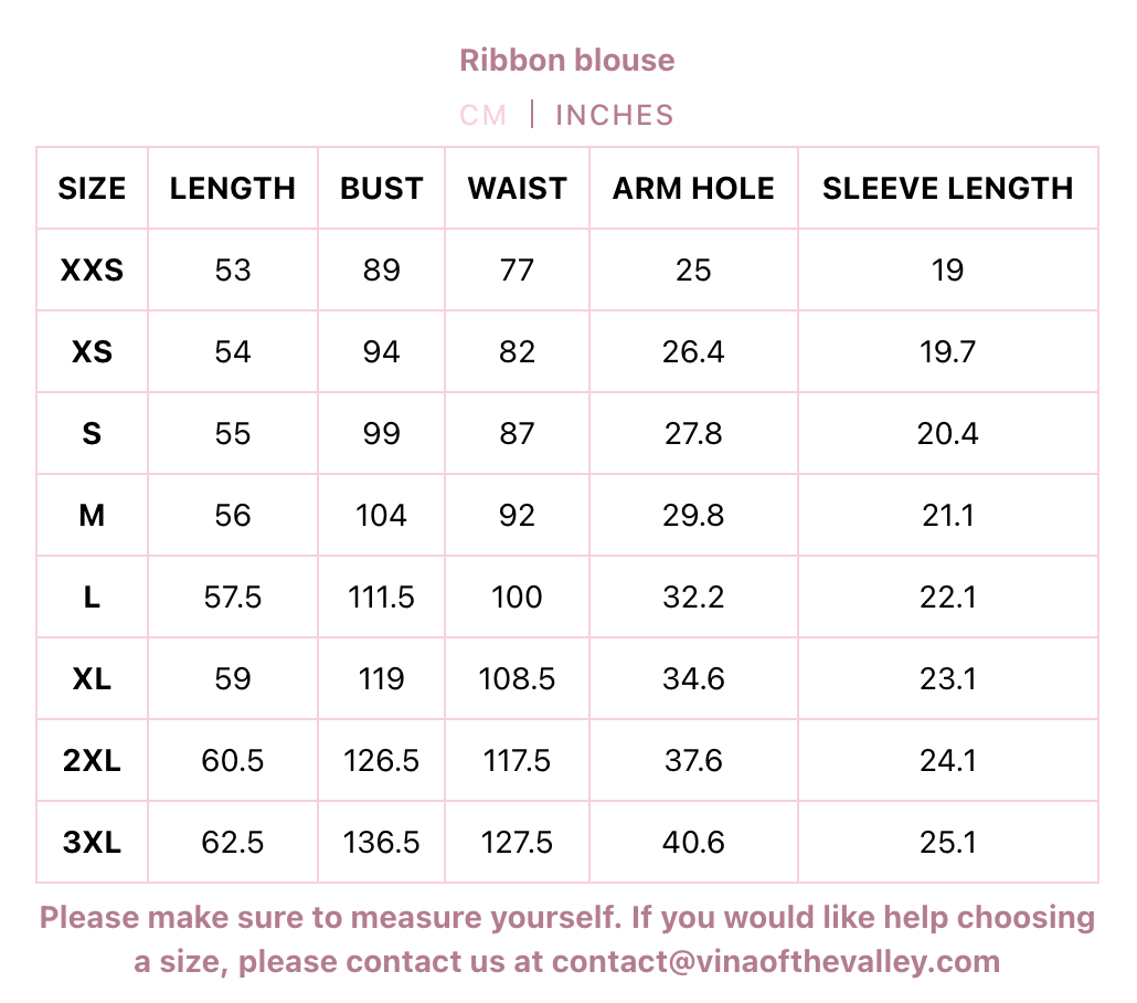 This 100% cotton blouse features decorative ribbons along the front, with hidden snap buttons and a ribbon to tie your waist at the back, for a perfect fit to your body. The ribbons at the front ensure any small gaps that may form are securely tied shut, and since they can be tied or untied they can lay flat underneath anything you may want to layer it with. It opens at the waist for a flattering fit if worn on its own, and features a little frill along the sleeve for extra cuteness!