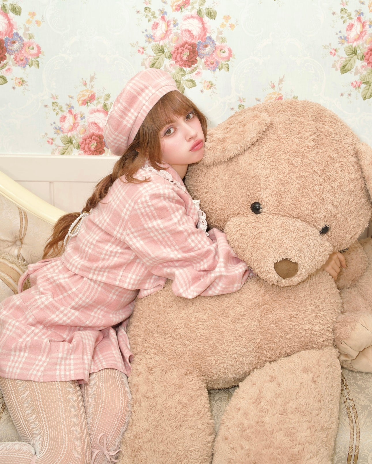 Winter Girl Double Breasted Ribbon Jacket - Pink Check // PREORDER