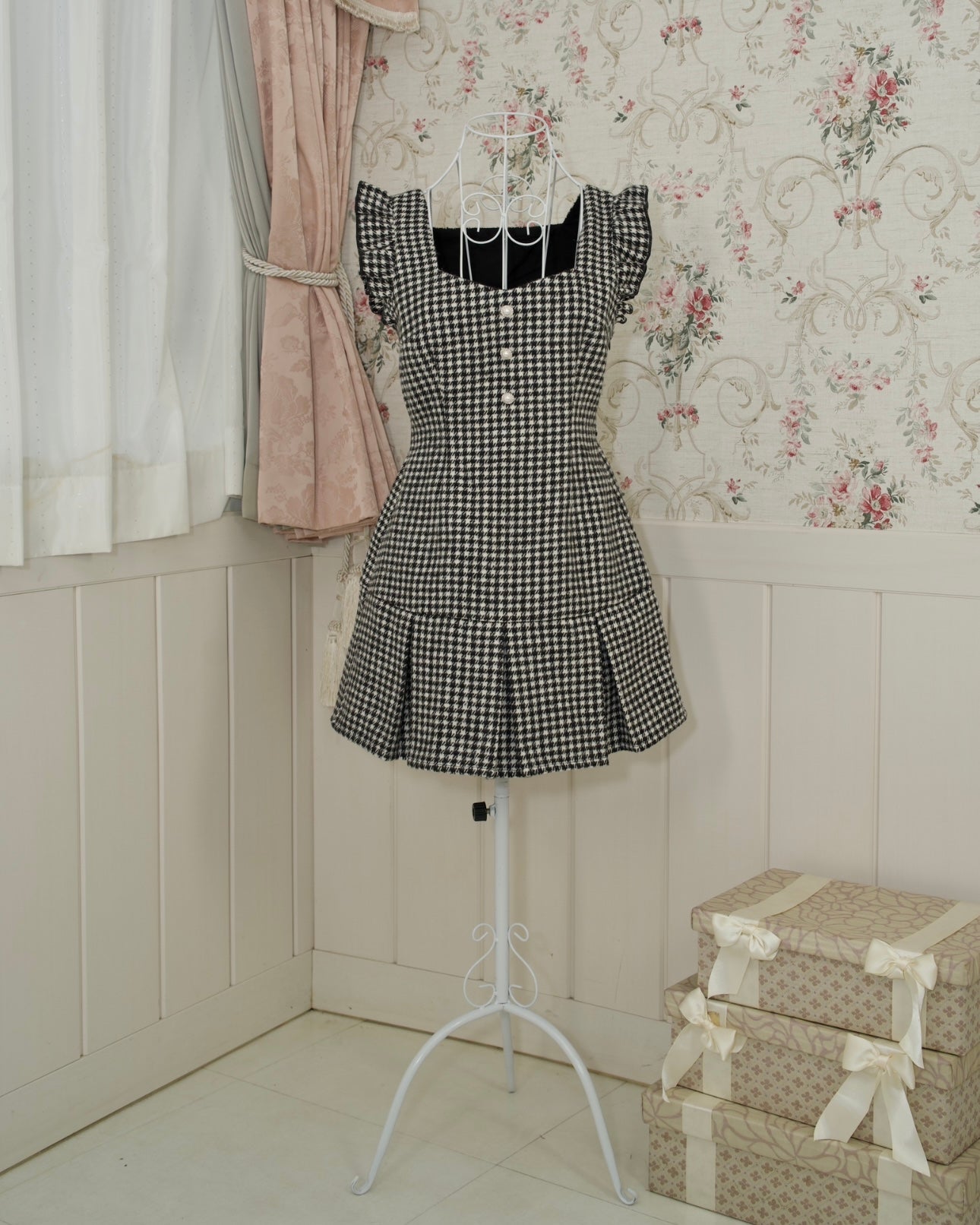 Made with a thick houndstooth fabric, this dress is comfortable as well as adorable. This is a fan favourite fabric that we have brought back, now in even better quality!