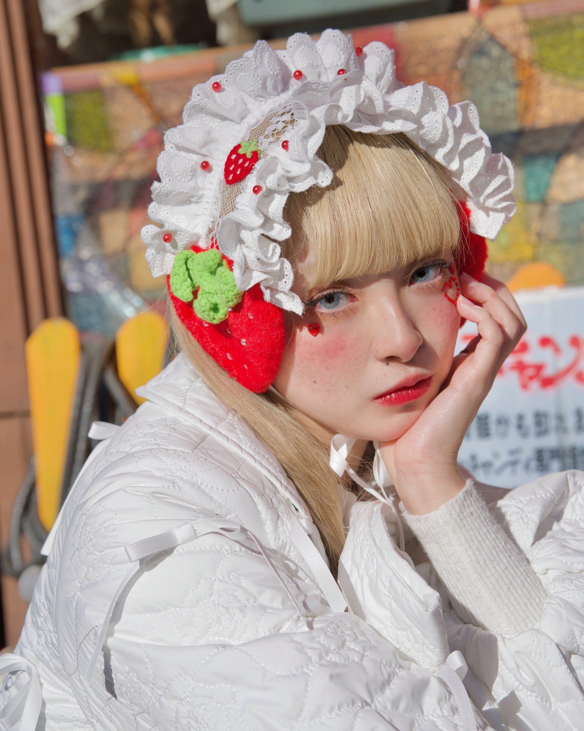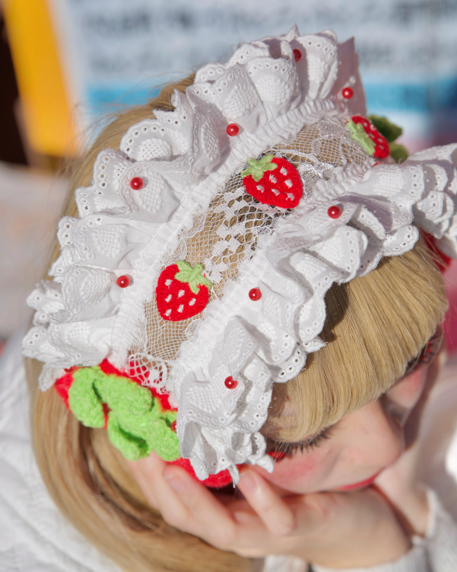 Our Strawberry Shortcake Ear Warmers are the perfect cosy accessory to add a sweet and whimsical touch to your winter looks. Designed with soft ruffled frills, delicate lace details, and adorable strawberry accents, these ear warmers bring a charming, storybook finish to any outfit. The plush ear panels gently cover the ears to help keep them warm and comfortable on colder days. Finished with ribbon ties, they can be tied under the chin for a secure and adjustable fit.